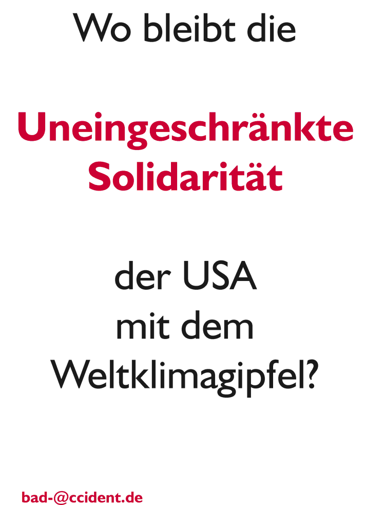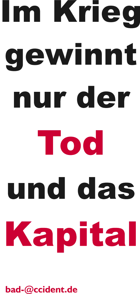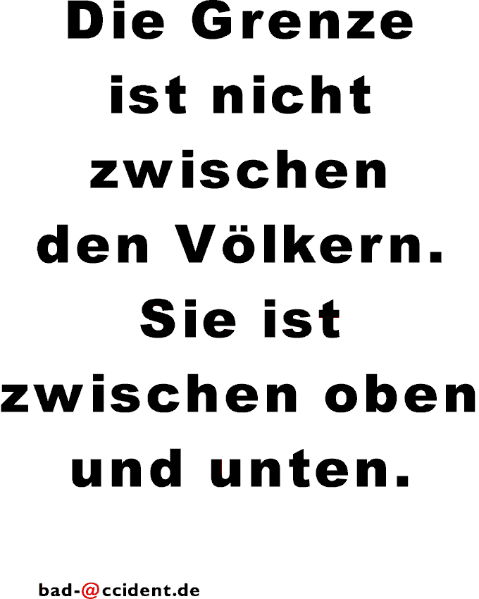 Da der Verfasser dieser Seite die Reaktion (nicht nur) der USA auf den Anschlag vom 11.9.01 mißbilligt, wird er wohl in Zukunft als Terrorist eingestuft. Auf dieser Seite einige Erklärungen, öffentlich auf T-shirts zu tragen, deren Inhalt nicht die uneingeschränkte Solidarität ist... |