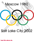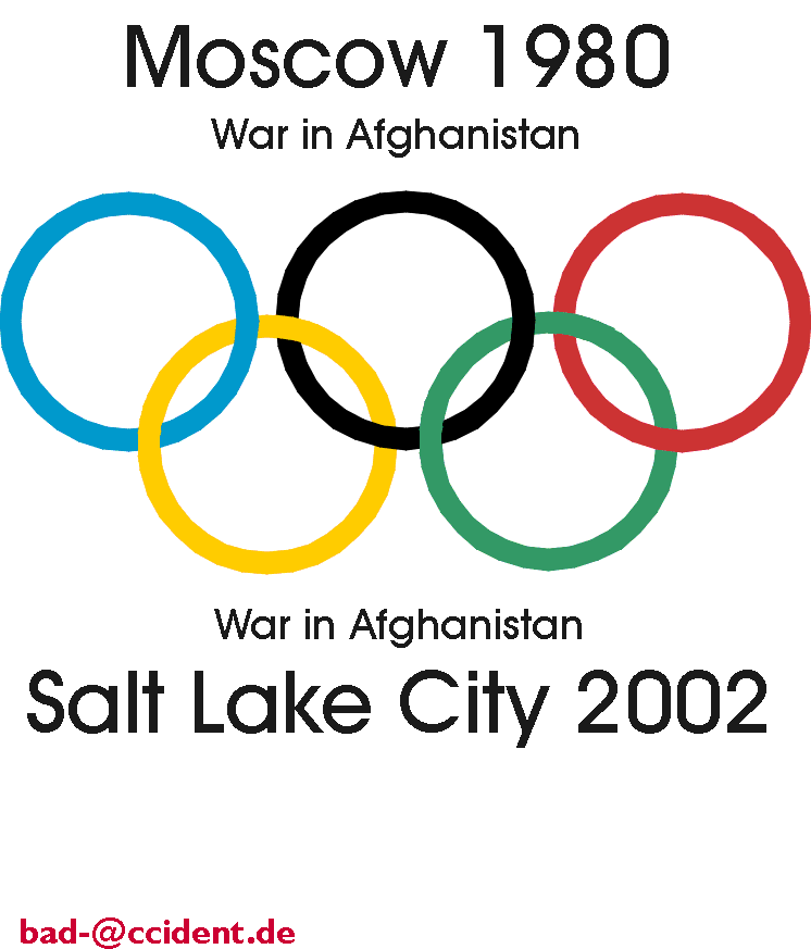 1980 boykottierte die westliche Welt wegen des Einmarschs der Roten Armee in Afghanistan die Olympischen Spiele von Moskau. Die Geschichte wollte es, daß zum Zeitpunkt der Olympischen Spiele von Salt Lake City die USA und ihre Verbündeten ebenfalls militärische Aktionen in Afghanistan durchführten. Die Idee von den friedlichen Olympischen Spielen bedingt, daß das gastgebende Land keinesfalls in kriegerische Handlungen verwickelt sein darf. Und so forderte der Verfasser dieser Seite einen Boykott der Olympischen Spiele von Salt Lake City 2002. Hier einige Erklärungen, auch nachträglich öffentlich auf T-shirts tragbar, die diesem Umstand Rechnung tragen... |
